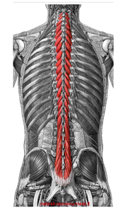 Once you have pulled all of the slack out of the bar and have your hips set at the correct height for your body shape and stance width. You need to brace your lower back, upper back and core to make sure your spine is protected and that you can keep your core stiff during the lift to not only minimise the chance of injury but also increase your efficiency to and strength during the lift. If you keep your back position intact you will never miss a lift at lockout as your joint angles become less and less as the bar gets closer to your lockout position/hips this has the effect of making you stronger. Missing at lockout is almost exclusively a knock on effect of losing your back position during the deadlift the reason being once your back rounds and you approach lockout and your knees and hips are either close to being fully extended or are fully extended you will be left with a large weight in your hands and with only the muscles of the lower back (Erector spinae muscles shown in the figure above) to extend or unfurl your spine.