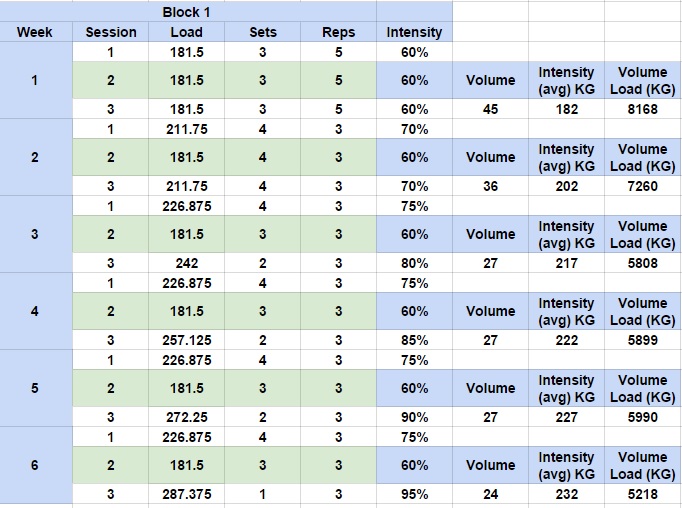 Below is block one in full working off the goal weight of 305 kg
