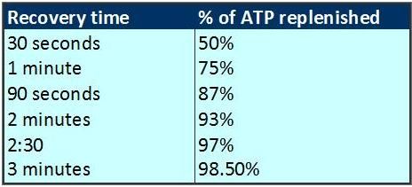So let’s say if you are doing 2 reps out of a possible 7 then you have 5 reps worth of ATP left in your muscle. Now let’s say it takes you 15-20 seconds to perform 2 reps @ 80% of your max. Leaving you 40 seconds to replenish your ATP stores before going again. Some rough math