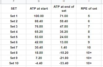 Before I get into laying out practically what is happening from a physiological standpoint during a workout like this I need to make sure we have some common understanding. 80% x 2 should represent a very low RPE effort. 80% is around your 7 rep max using the Brycki formula which I find pretty reliable. 80%x2 should leave you at an RPE of 5 so very easy and not a very stimulating effort however when we start to bring ATP into the picture then it starts to change a bit.